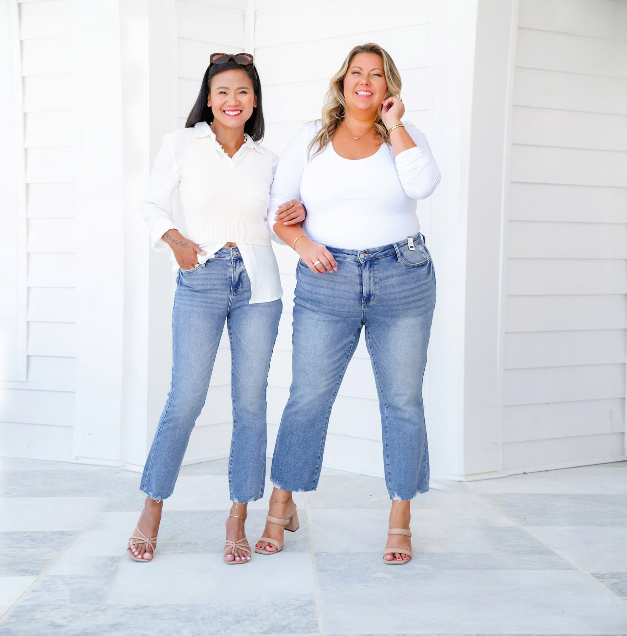 A figure flattering mid rise, hip‑skimming kick flare, and raw edge deliver that effortless “oh‑these? vintage” vibe—while the soft stretch denim keeps you comfy from school drop‑off to date night.